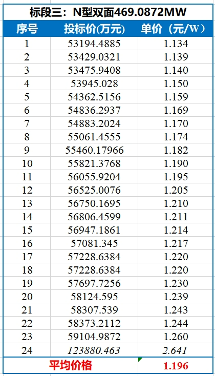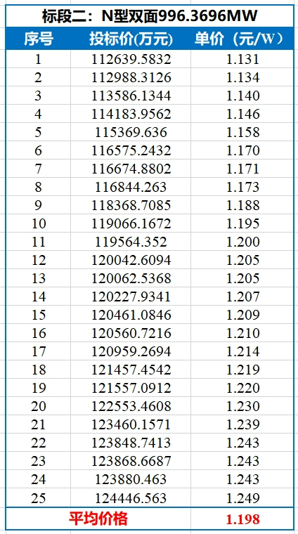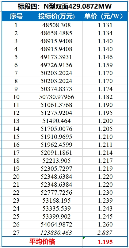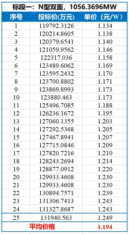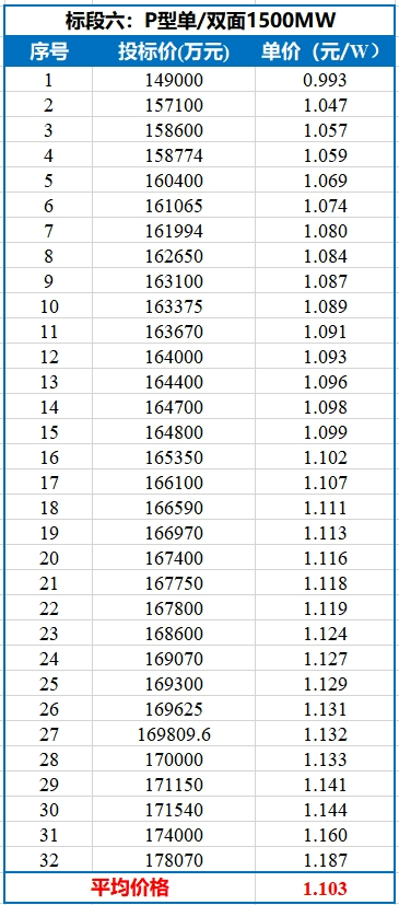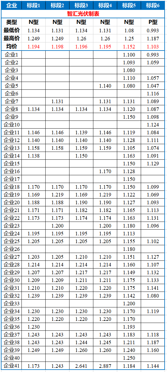 共41家企业参与了此次投标,各标段开标结果如下表所示。值得注意的是,P型最低投标价格已经跌破1元/W!